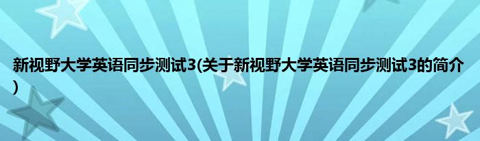 大家好,新视野大学英语同步测试3,关于新视野大学英语同步测试3的简介很多人还不知道,现在让我们一起来看看吧!
