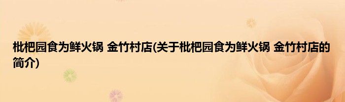 本文关于枇杷园食为鲜火锅 金竹村店的简介就讲解完毕,希望对大家有所帮助。