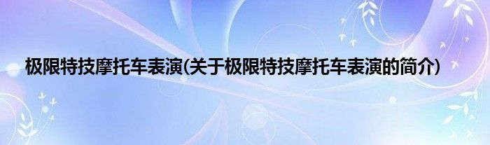 本文关于极限特技摩托车表演的简介就讲解完毕,希望对大家有所帮助。