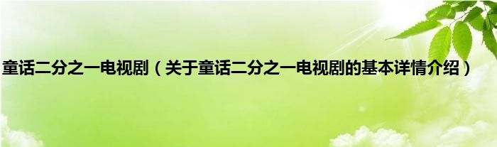 本文关于童话二分之一电视剧的基本详情介绍就讲解完毕,希望对大家有所帮助。