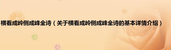 本文关于横看成岭侧成峰全诗的基本详情介绍就讲解完毕,希望对大家有所帮助。
