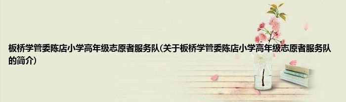 本文关于板桥学管委陈店小学高年级志原者服务队的简介就讲解完毕,希望对大家有所帮助。