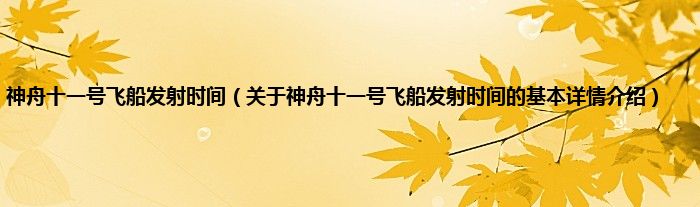 本文关于神舟十一号飞船发射时间的基本详情介绍就讲解完毕,希望对大家有所帮助。