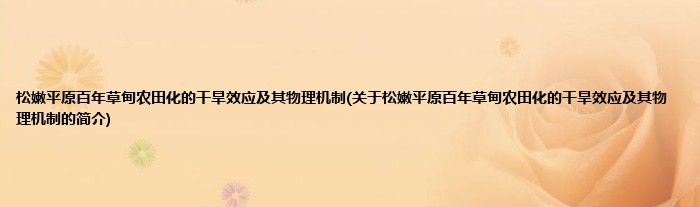 本文关于松嫩平原百年草甸农田化的干旱效应及其物理机制的简介就讲解完毕,希望对大家有所帮助。