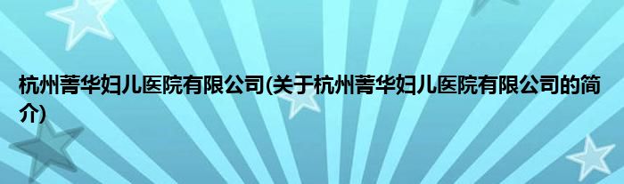 本文关于杭州菁华妇儿医院有限公司的简介就讲解完毕,希望对大家有所帮助。