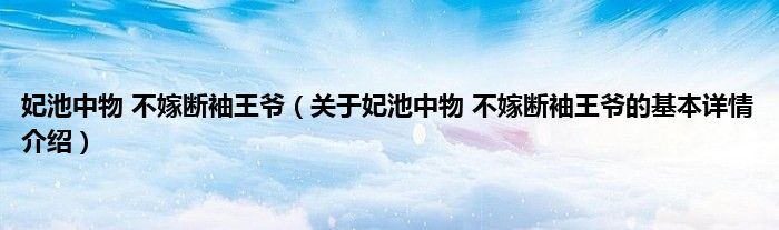 本文关于妃池中物 不嫁断袖王爷的基本详情介绍就讲解完毕,希望对大家有所帮助。