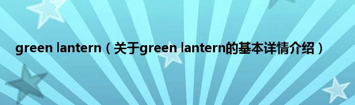 本文关于green lantern的基本详情介绍就讲解完毕,希望对大家有所帮助。