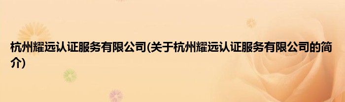 本文关于杭州耀远认证服务有限公司的简介就讲解完毕,希望对大家有所帮助。