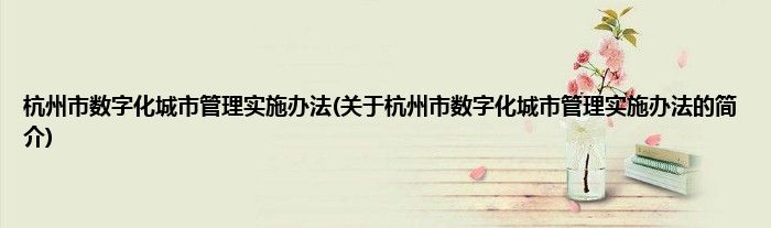 大家好,杭州市数字化城市管理实施办法,关于杭州市数字化城市管理实施办法的简介很多人还不知道,现在让我们一起来看看吧!