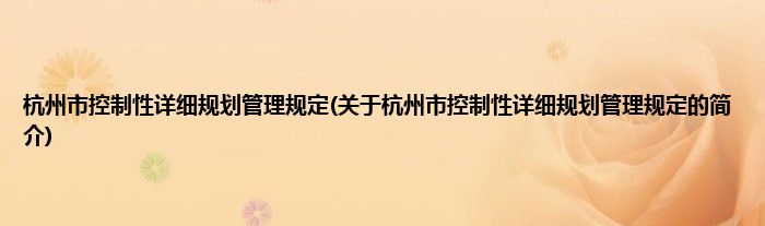 大家好,杭州市控制性详细规划管理规定,关于杭州市控制性详细规划管理规定的简介很多人还不知道,现在让我们一起来看看吧!