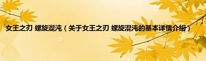 大家好我是小蝌蚪,女王之刃 螺旋混沌,关于女王之刃 螺旋混沌的基本详情介绍很多人还不知道,那么现在让我们一起来看看吧!