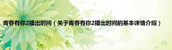 本文关于青春有你2播出时间的基本详情介绍就讲解完毕,希望对大家有所帮助。