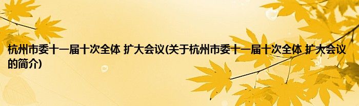 本文关于杭州市委十一届十次全体 扩大会议的简介就讲解完毕,希望对大家有所帮助。
