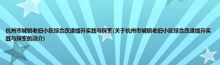 大家好,杭州市城镇老旧小区综合改造提升实践与探索,关于杭州市城镇老旧小区综合改造提升实践与探索的简介很多人还不知道,现在让我们一起来看看吧!