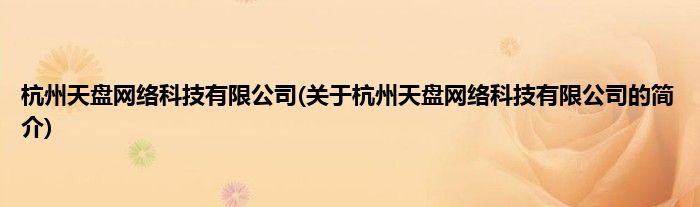 本文关于杭州天盘网络科技有限公司的简介就讲解完毕,希望对大家有所帮助。
