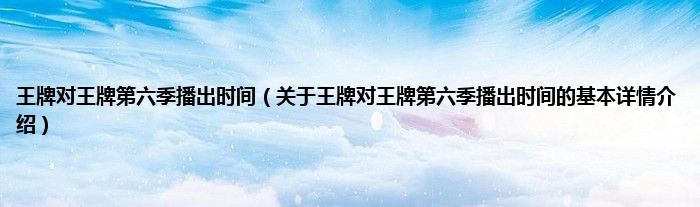 本文关于王牌对王牌第六季播出时间的基本详情介绍就讲解完毕,希望对大家有所帮助。