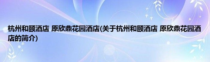 大家好,杭州和颐酒店 原欣鼎花园酒店,关于杭州和颐酒店 原欣鼎花园酒店的简介很多人还不知道,现在让我们一起来看看吧!