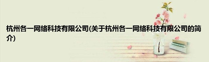 本文关于杭州各一网络科技有限公司的简介就讲解完毕,希望对大家有所帮助。