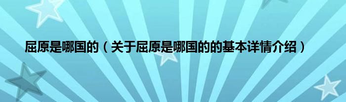 本文关于屈原是哪国的的基本详情介绍就讲解完毕,希望对大家有所帮助。