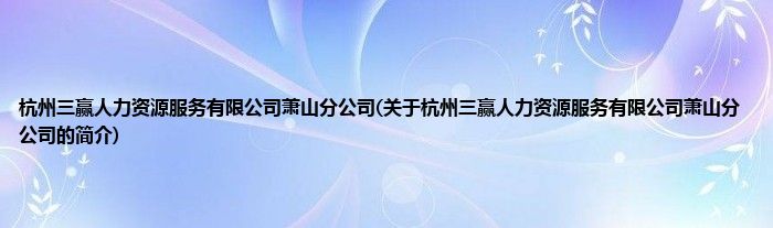 本文关于杭州三赢人力资源服务有限公司萧山分公司的简介就讲解完毕,希望对大家有所帮助。