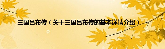 本文关于三国吕布传的基本详情介绍就讲解完毕,希望对大家有所帮助。