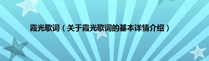 本文关于霞光歌词的基本详情介绍就讲解完毕,希望对大家有所帮助。