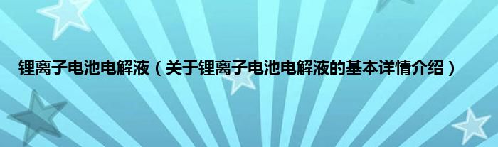 本文关于锂离子电池电解液的基本详情介绍就讲解完毕,希望对大家有所帮助。
