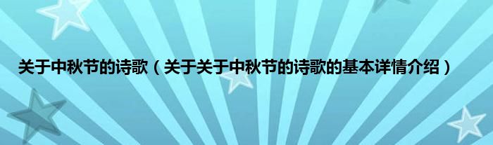 本文关于关于中秋节的诗歌的基本详情介绍就讲解完毕,希望对大家有所帮助。