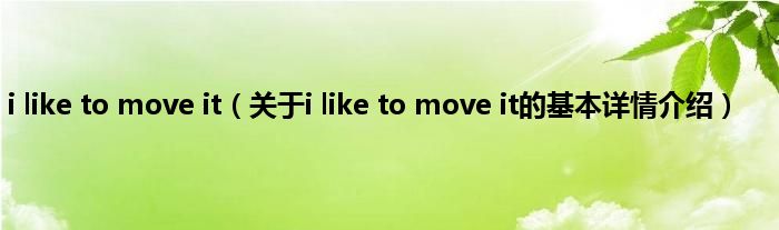 本文关于i like to move it的基本详情介绍就讲解完毕,希望对大家有所帮助。