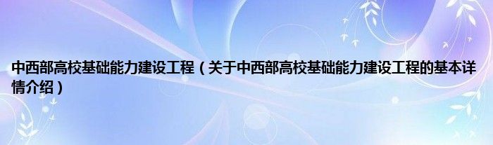 本文关于中西部高校基础能力建设工程的基本详情介绍就讲解完毕,希望对大家有所帮助。