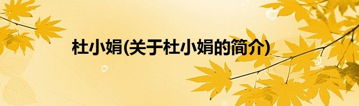 本文关于杜小娟的简介就讲解完毕,希望对大家有所帮助。