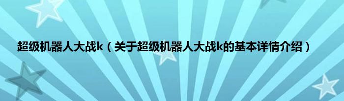 本文关于超级机器人大战k的基本详情介绍就讲解完毕,希望对大家有所帮助。