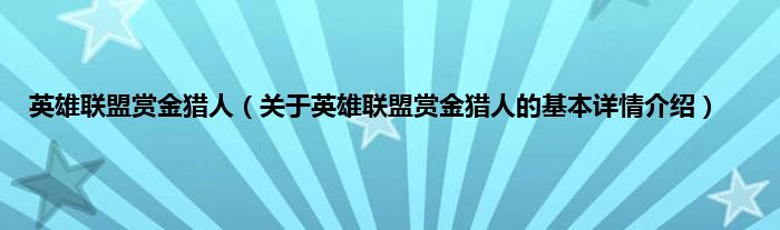 本文关于英雄联盟赏金猎人的基本详情介绍就讲解完毕,希望对大家有所帮助。