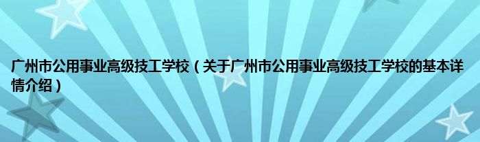 本文关于广州市公用事业高级技工学校的基本详情介绍就讲解完毕,希望对大家有所帮助。