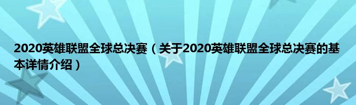 本文关于2020英雄联盟全球总决赛的基本详情介绍就讲解完毕,希望对大家有所帮助。