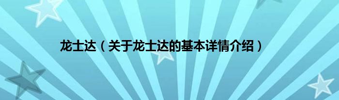 大家好我是小蝌蚪,龙士达,关于龙士达的基本详情介绍很多人还不知道,那么现在让我们一起来看看吧!