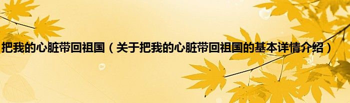 本文关于把我的心脏带回祖国的基本详情介绍就讲解完毕,希望对大家有所帮助。
