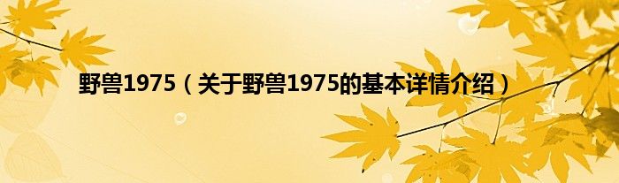 本文关于野兽1975的基本详情介绍就讲解完毕,希望对大家有所帮助。
