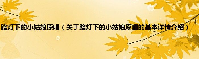 本文关于路灯下的小姑娘原唱的基本详情介绍就讲解完毕,希望对大家有所帮助。