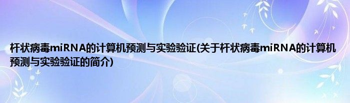 杆状病毒miRNA的计算机预测与实验验证(关于杆状病毒miRNA的计算机预测与实验验证的简介)