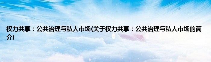 本文关于权力共享:公共治理与私人市场的简介就讲解完毕,希望对大家有所帮助。