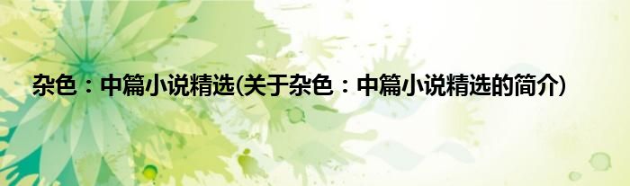 本文关于杂色:中篇小说精选的简介就讲解完毕,希望对大家有所帮助。
