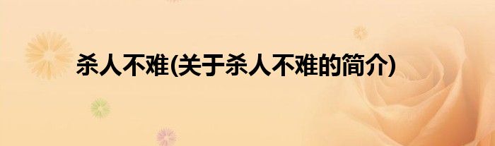大家好,杀人不难,关于杀人不难的简介很多人还不知道,现在让我们一起来看看吧!