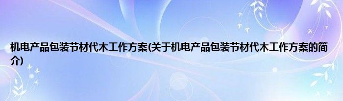 本文关于机电产品包装节材代木工作方案的简介就讲解完毕,希望对大家有所帮助。