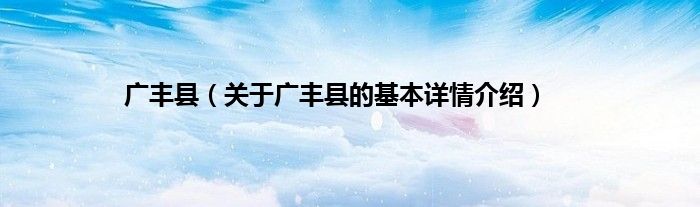 本文关于广丰县的基本详情介绍就讲解完毕,希望对大家有所帮助。