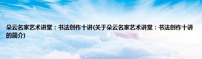 本文关于朵云名家艺术讲堂:书法创作十讲的简介就讲解完毕,希望对大家有所帮助。