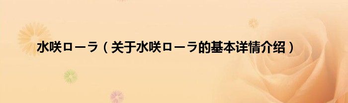 本文关于水咲ローラ的基本详情介绍就讲解完毕,希望对大家有所帮助。
