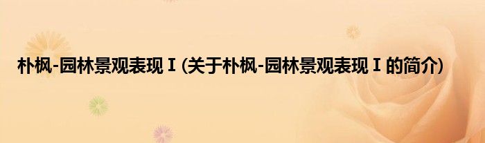 大家好,朴枫-园林景观表现Ⅰ,关于朴枫-园林景观表现Ⅰ的简介很多人还不知道,现在让我们一起来看看吧!