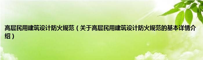 本文关于高层民用建筑设计防火规范的基本详情介绍就讲解完毕,希望对大家有所帮助。