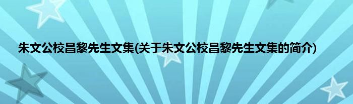 朱文公校昌黎先生文集(关于朱文公校昌黎先生文集的简介)